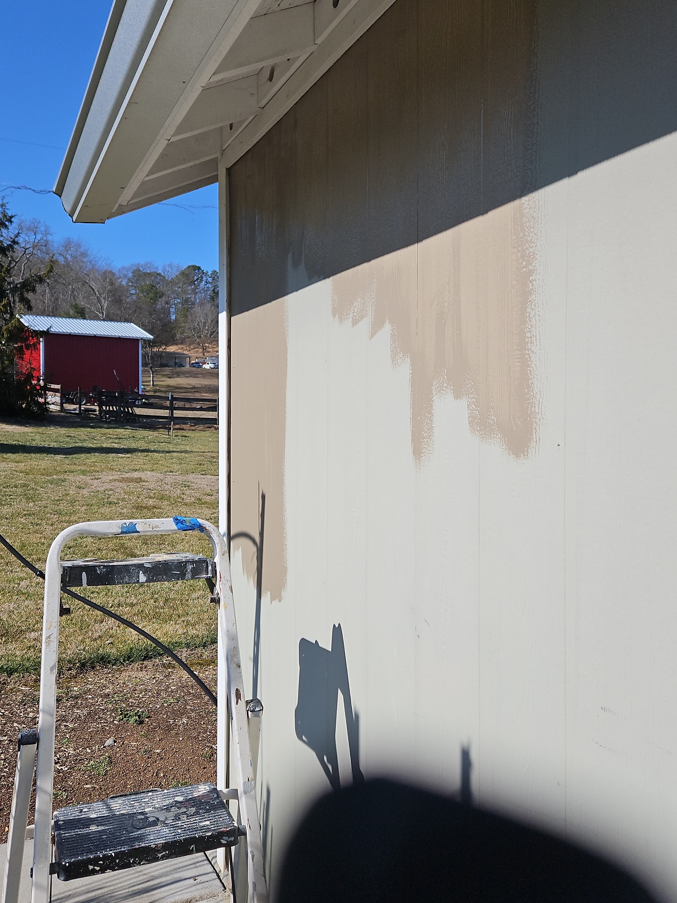 Our shed has been a workhorse for 10 years now and the stained siding had really started to oxidize, so I went to Sherwin Williams and had them color match a solid stain to the color of the vinyl shingle siding.